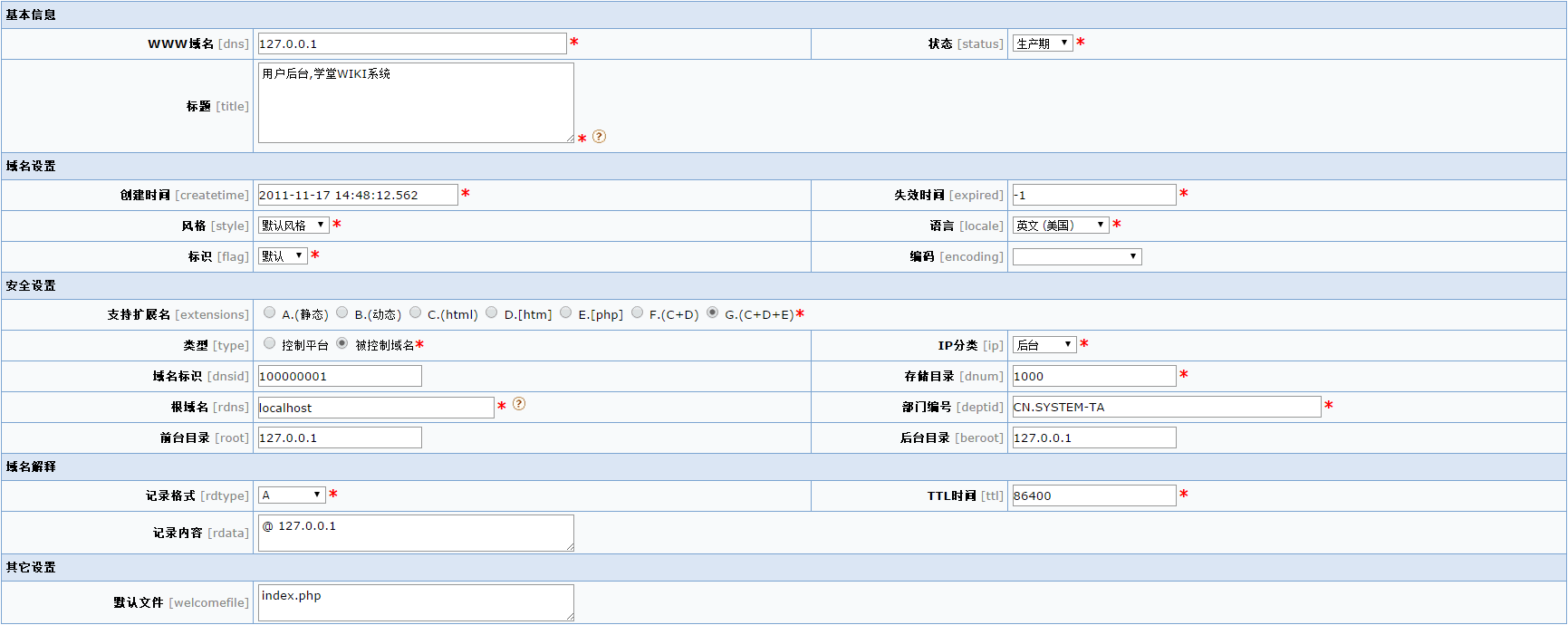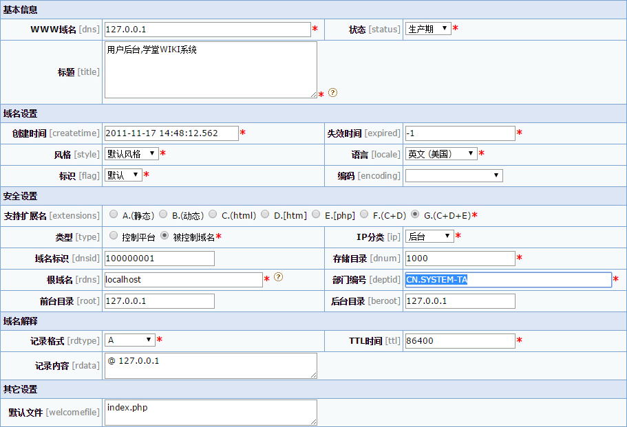 DNS服务组件可以在系统管理后台的域名管理功能维护: