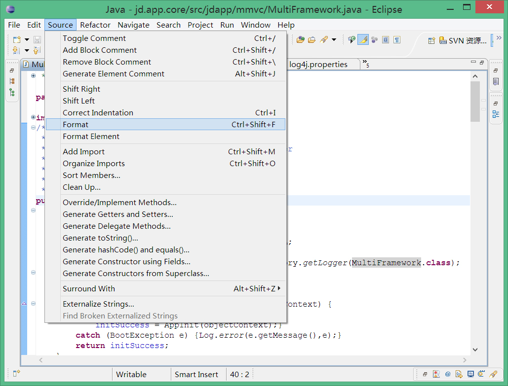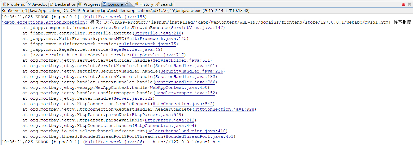 4、日志管理:提供日志接口,支持Log4日志输出,默认日志功组件在eclipse开发时日志会打印在控制面板Console窗口下面,点击打印出来的Java类名可以直接连接定位到Java文件内容中的日志输出方法指标。